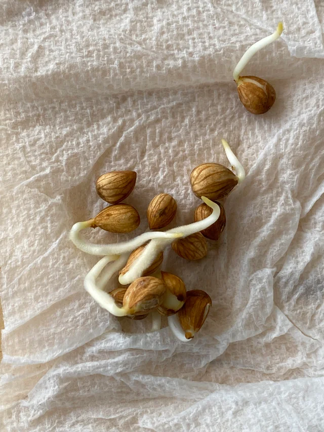 Once the seeds crack open and tiny roots appear, they’re ready for planting.