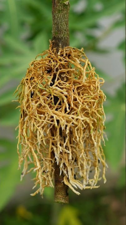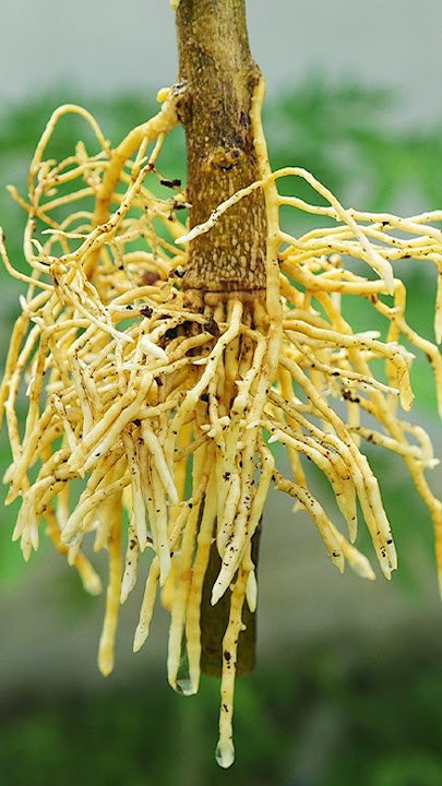 - Once roots are well formed, cut the branch below the rooting area.
