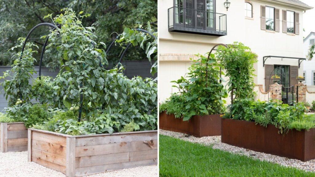 Wood is commonly used. Bricks provide durability. Concrete blocks are long-lasting. Metal beds look modern. Avoid treated wood chemicals. Natural materials are safer. Recycled materials reduce cost. Choose sturdy and safe options.